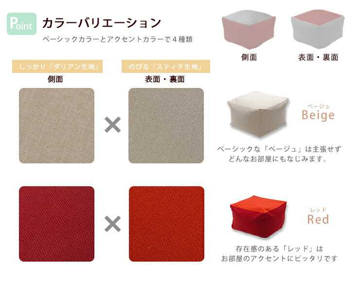 「QUBE」ビーズクッション「L」 ベージュ レッド アッシュグレー インディゴブルー